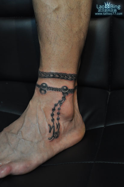 武汉专业纹身店:个性的腿部链子纹身图案作品