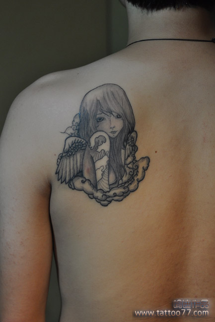 武汉专业纹身店:帅气的后背天使纹身图案作品