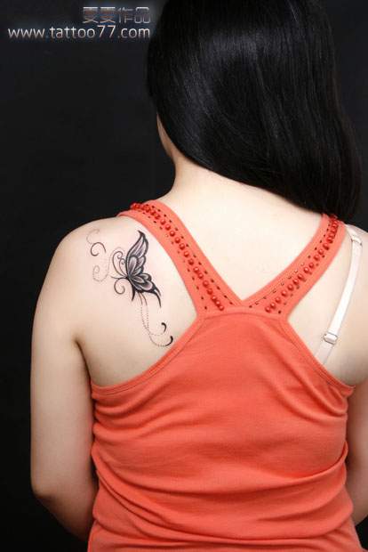 武汉专业纹身店:美女背部蝴蝶纹身图案作品