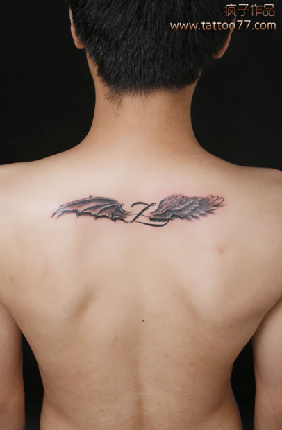 武汉专业纹身店:帅气的颈部翅膀纹身图案作品