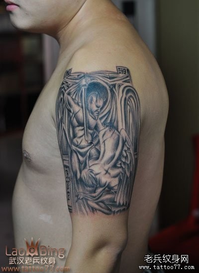 武汉专业纹身店:大臂越狱纹身天使恶魔纹身图案作品