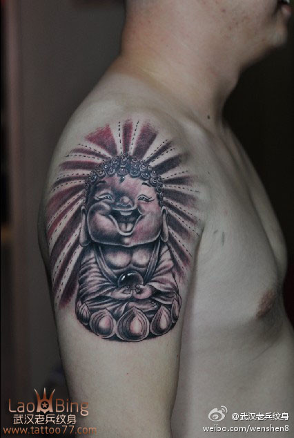 武汉专业纹身店:大臂Q版佛纹身图案作品