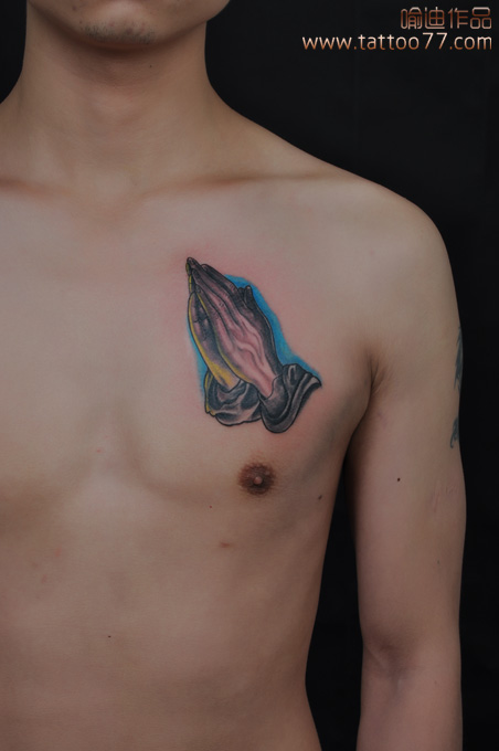 武汉专业纹身店:胸口祈祷之手纹身图案作品