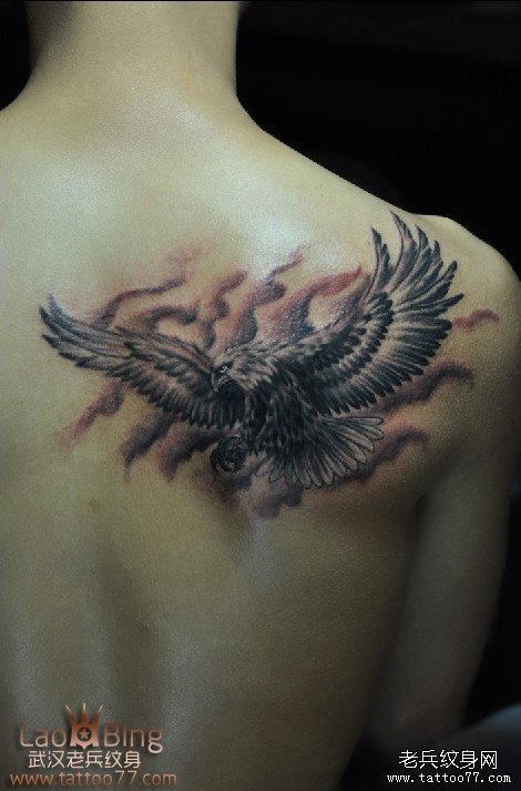 武汉专业纹身店:为宜昌纹身爱好都打造的后背老鹰纹身图案作品