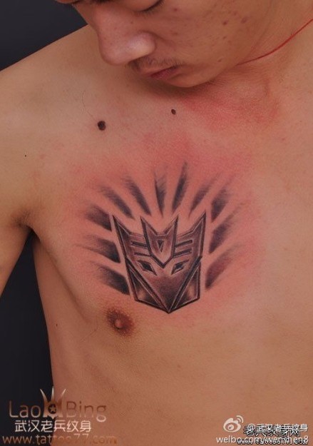 武汉专业纹身店:一款时尚霸气的胸口变形金刚标志纹身图案作品