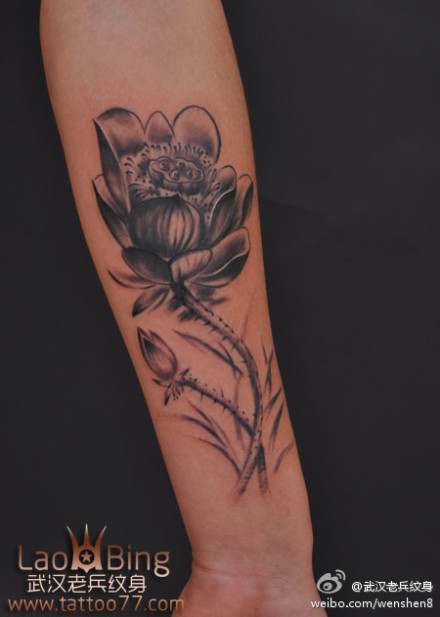 此副莲花纹身图案作品,为武汉纹身老兵刺青师兵哥打造,耗时90分钟,承载者来自江苏纹身爱好者,莲花与中国的文化有着密切相关的联系,它象征着纯洁,吉祥和爱情。与莲花文化关系最深的也是中国,莲花纹身常常与中国的佛教相结合,很多喜欢传统纹身的人都会在