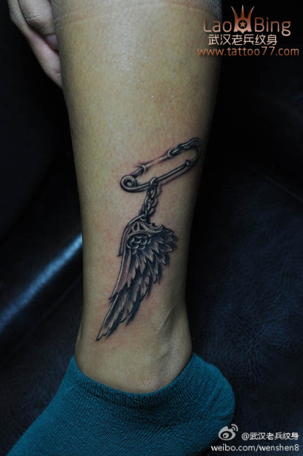 武汉专业纹身店:腿部别针翅膀纹身图案作品