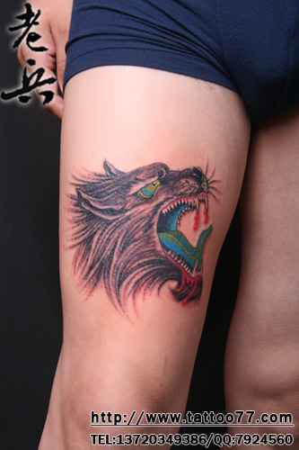 腿部滴血狼头纹身