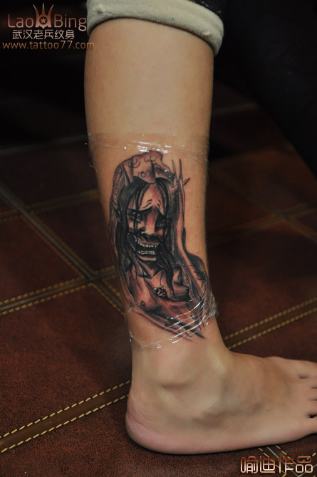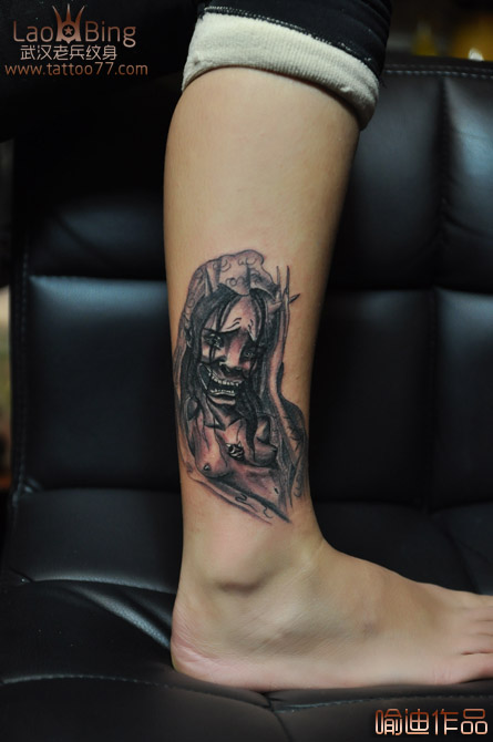 美女腿部般若纹身作品由武汉最好的纹身店出品