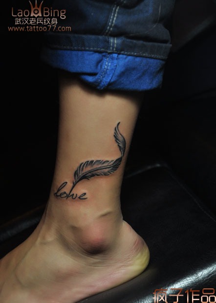 个性的脚踝羽毛纹身由武汉最好纹身店出品