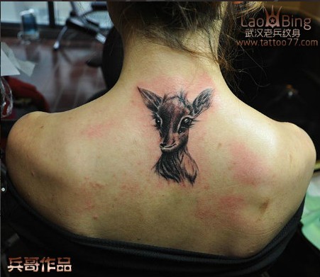 小清新的颈部小鹿纹身由武汉最好纹身店老兵打造