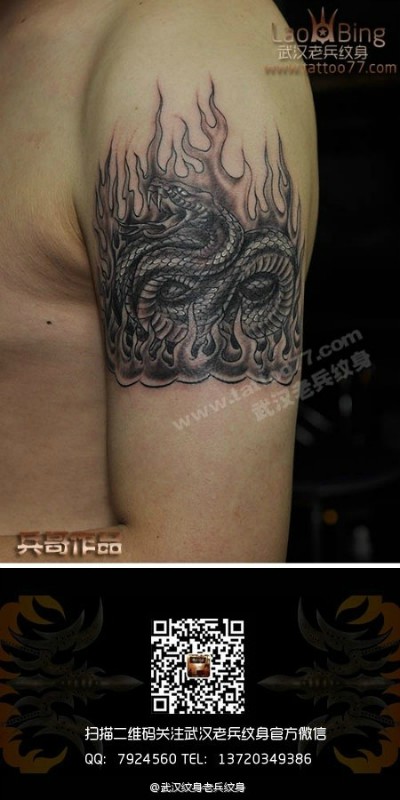 霸气的大臂火蛇纹身由武汉专业纹身店老兵出品
