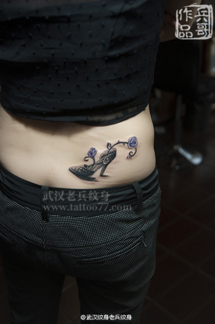 美女腰部高跟鞋纹身由武汉最好纹身店老兵打造