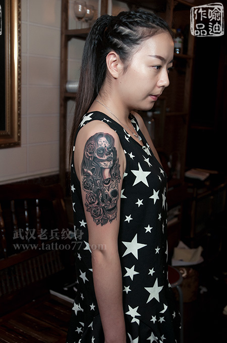 美女的大臂SCHOOL女郎纹身出自武汉最好纹身店