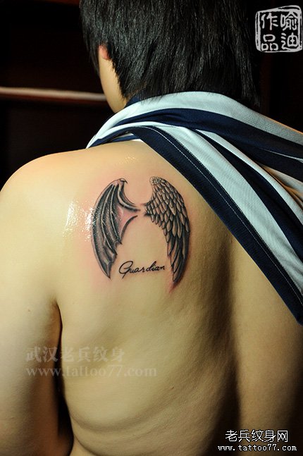 武汉最好纹身店打造的后背天使恶魔翅膀纹身作品
