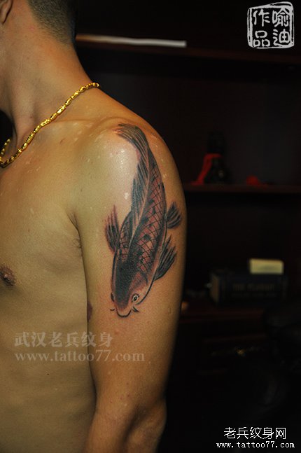 武汉最好纹身店打造的大臂水墨鲤鱼纹身作品