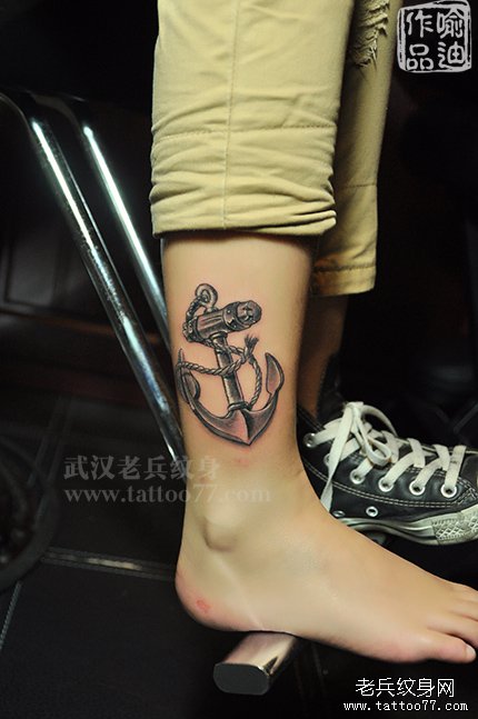 武汉最好纹身店为美女打造的腿部船锚纹身