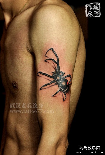 武汉最好纹身店打造的大臂蜘蛛纹身作品
