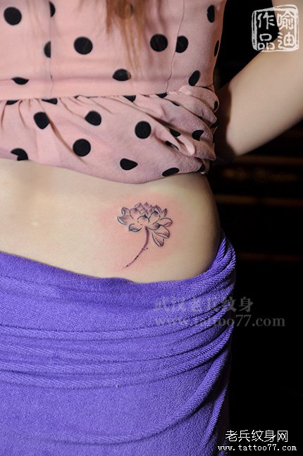 武汉专业纹身店打造的美女腰部水墨莲花纹身