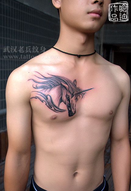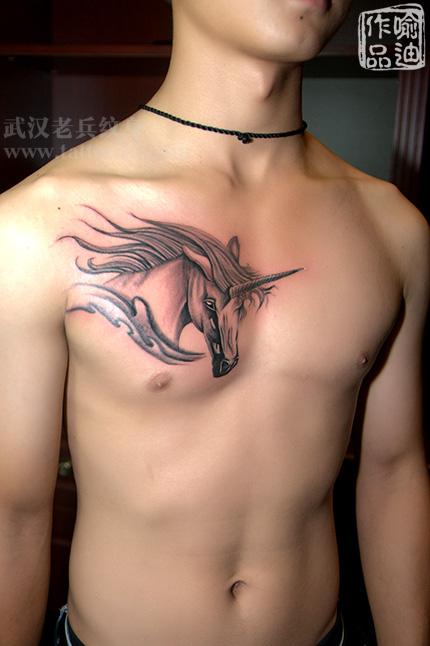 武汉最好纹身店打造的胸口独角兽纹身作品