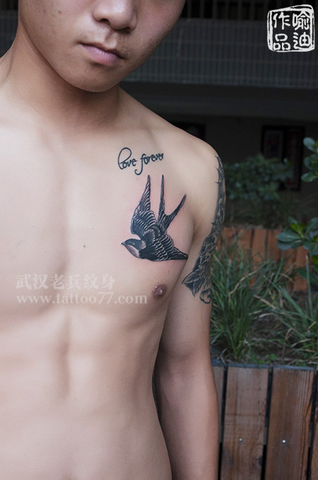 武汉最好纹身店为卓尔足球运动员打造的胸口燕子纹身