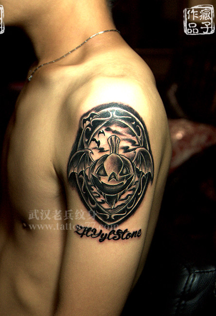 武汉最好纹身店打造的大臂南瓜怪纹身作品