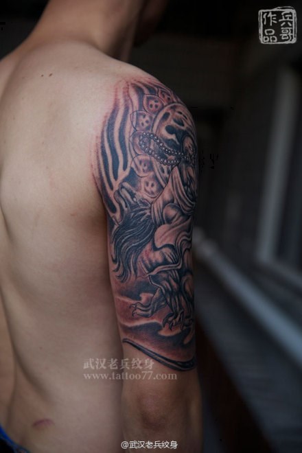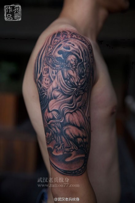 武汉最好纹身店打造的大臂笑狮罗汉纹身