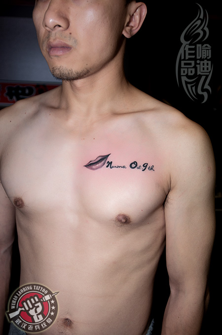 武汉最好纹身店打造的胸口嘴唇文字纹身作品