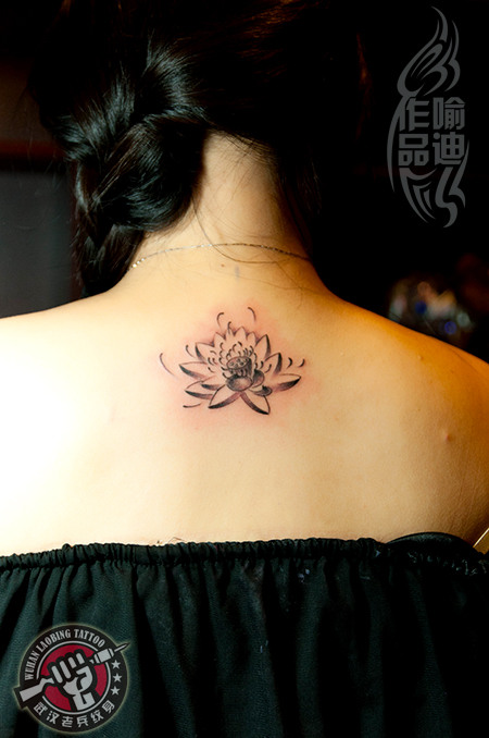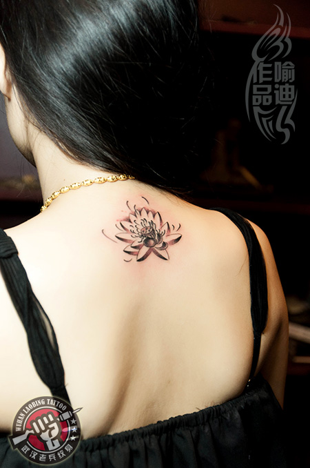 武汉最好纹身店老兵纹身师喻迪为俩姐妹打造的水墨莲花纹身作品
