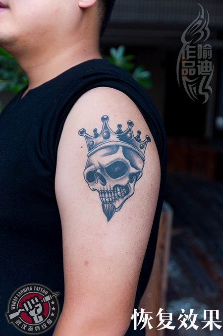 武汉最好纹身店打造的大臂骷髅纹身恢复效果