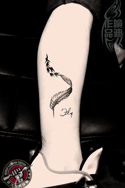 武汉最好纹身店打造的腿部羽化燕纹身作品