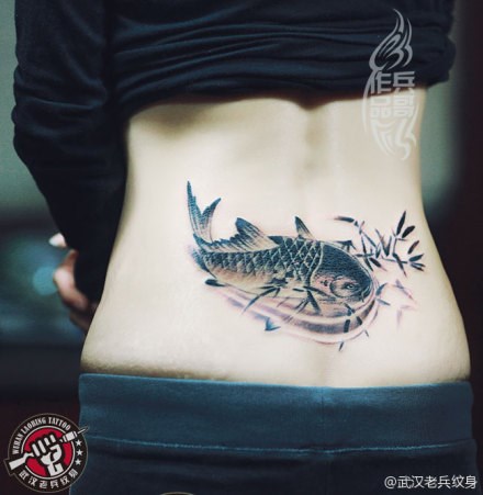 武汉最好纹身店打造的腰部水墨鱼纹身作品