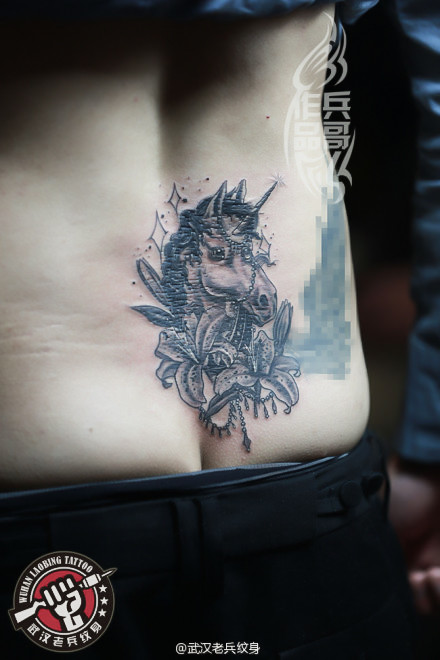 武汉最好纹身店打造的腰部独角兽纹身作品