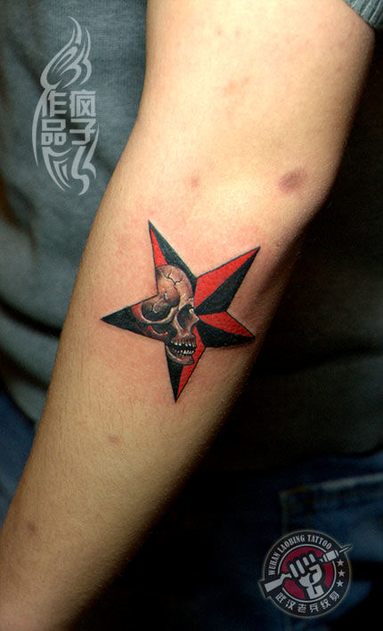 武汉最好纹身店打造的五角星骷髅纹身作品