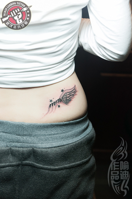 武汉最好纹身店打造的腰部翅膀文字纹身作品