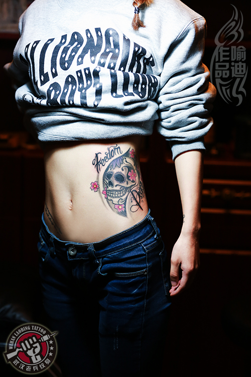 武汉最好纹身店打造的美女腰部骷髅纹身作品恢复效果