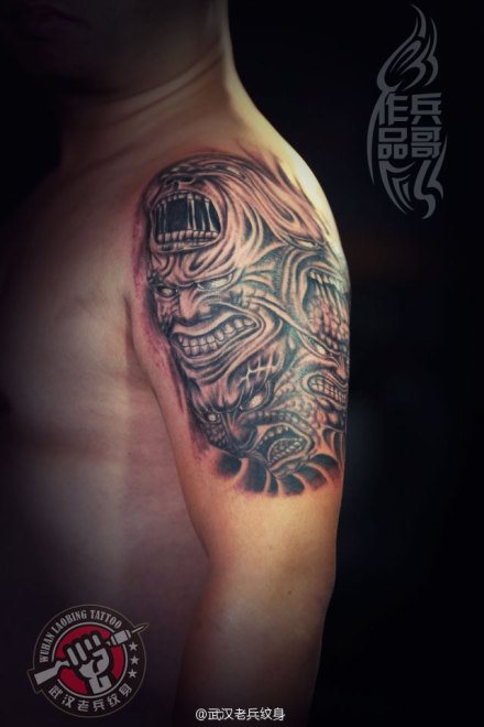 武汉最好纹身店创造的大臂恶魔纹身作品