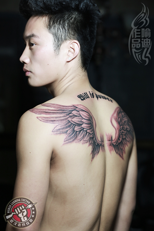 2014年武汉最好纹身店为刚退役的小伙子打造的后背翅膀纹身