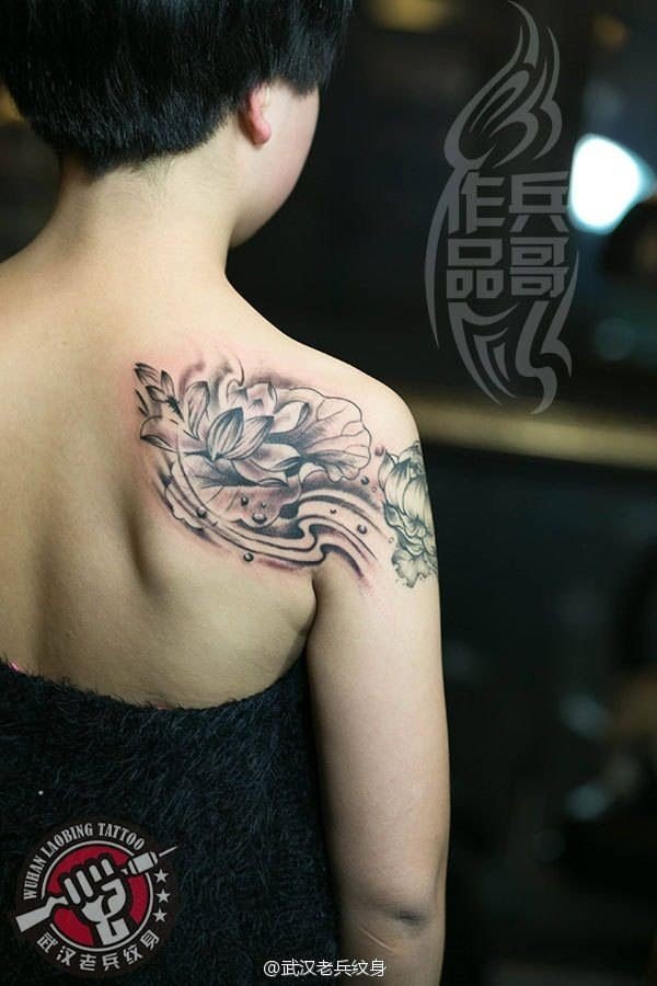 武汉最好纹身店为美女打造的肩部莲花纹身作品