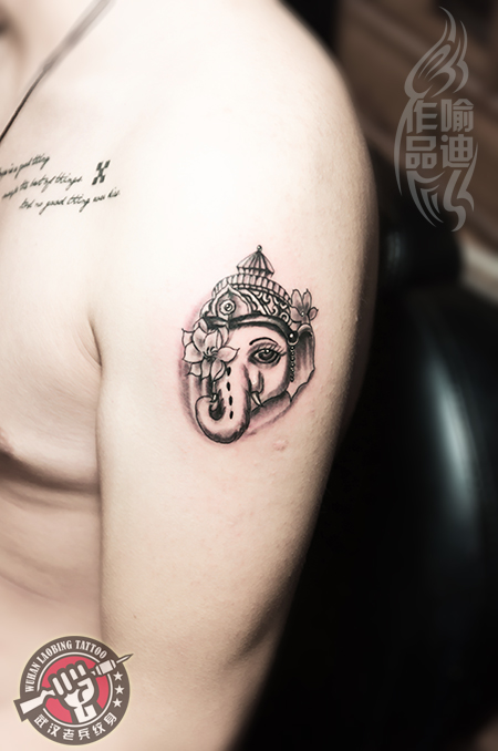 武汉最好纹身店打造的大臂可爱象神纹身作品