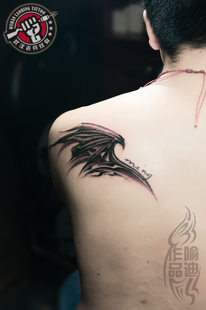 武汉最好纹身店打造的肩部恶魔翅膀纹身作品