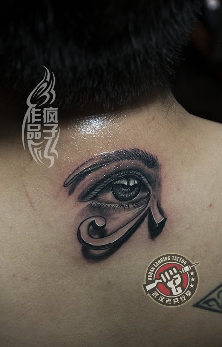 武汉最好纹身店打造的颈部荷鲁斯之眼纹身作品