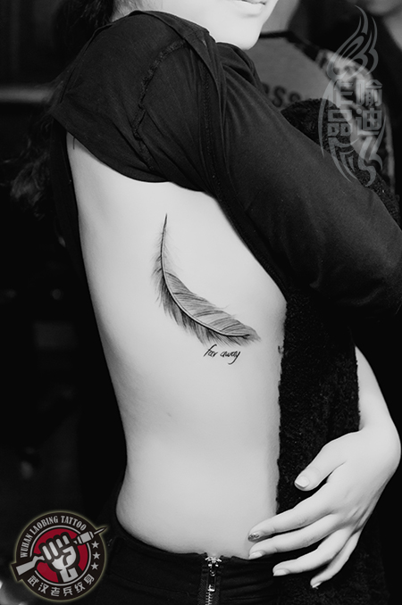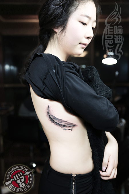 武汉最好纹身店打造的美女侧腰羽毛纹身作品