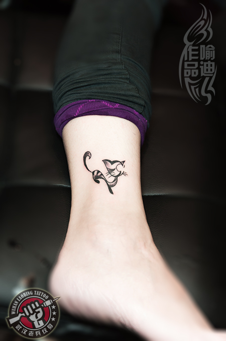 武汉最好纹身店打造的脚踝猫咪纹身作品