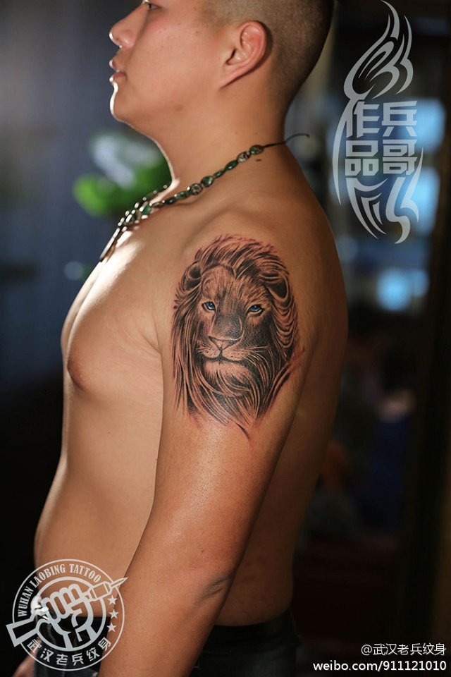武汉最好纹身店打造的大臂狮子头纹身作品