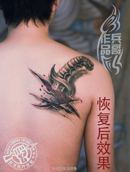 武汉专业纹身店打造的撕皮匕首恢复后效果