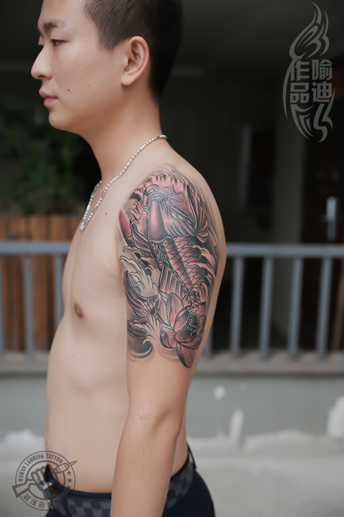 武汉最专业纹身店打造的大臂鲤鱼纹身作品