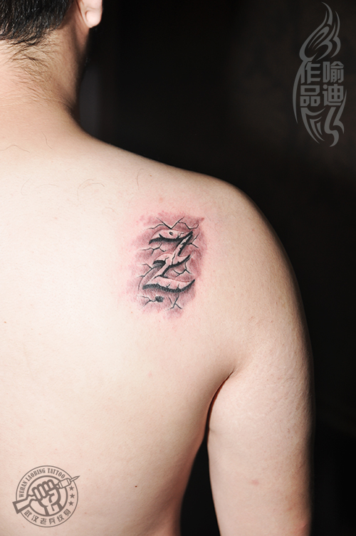 武汉专业纹身店打造的背部浮雕文字纹身作品