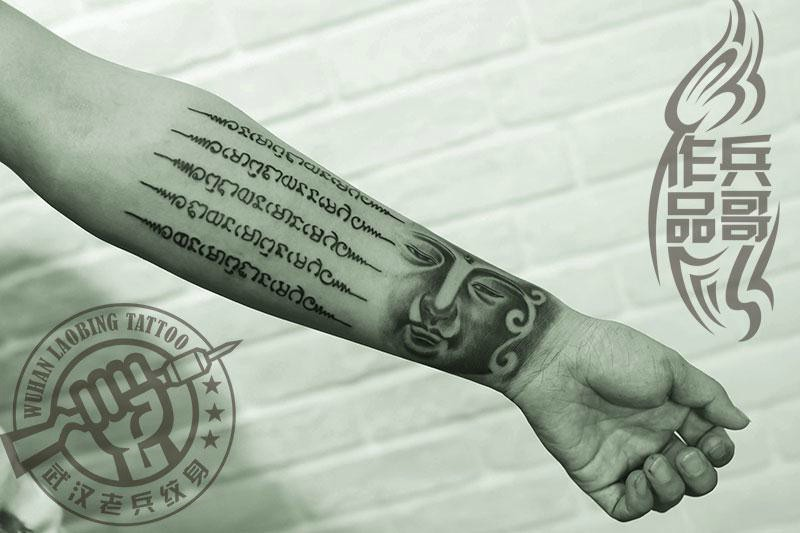 武汉最好纹身店打造的手臂佛头经文纹身