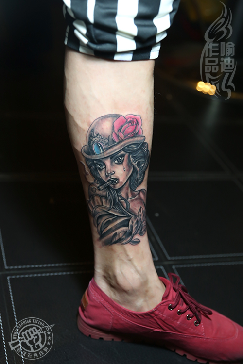 武汉最好纹身店打造的遮盖疤痕--腿部美女纹身作品